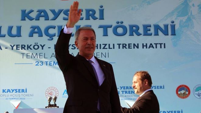 Cumhurbaşkanı Recep Tayyip Erdoğan'ın katılacağı toplu açılış töreninde konuşan Milli Savunma Bakanı Hulusi Akar; tüm iyi niyete rağmen Türk okullarını askıya alan Yunanistan'ı şiddetle kınadığını ifade ederek; "Tüm dünyada yaşanan ekonomik darboğaza rağmen sanayide yatırımına devam eden ülkemiz ve Kayserimiz cumhurbaşkanımızın ortaya koyduğu siyasetle önemli kazanımlar elde etmiştir. Kayseri'nin Türkiye’nin en hızlı büyüyen şehirlerden biri olmasını sağlayan başta cumhurbaşkanımız olmak üzere tüm emeği geçelere şükranlarımı sunuyorum. Türkiye; siyasi, askeri ve ekonomik dengelerin yeniden inşa edildiği dönemde cumhurbaşkanı Erdoğan liderliğinde küresel bir aktör olarak etki ortaya koymuştur. Milli savunma bakanlığımız cumhuriyet tarihinin en yoğun faaliyetlerini icra etmektedir. Bu kapsamda Mehmetçik 'hudut namustur' anlayışıyla güvenliğimizi sağlamakta. Mehmetçiğimiz tüm terör örgütleriyle mücadele etmekte, Kıbrıs dahil tüm hak ve menfaatlerimizi azim ve kararlılıkla korumaya devam etmektedir. Tüm iyi niyetlerimize rağmen yunan siyasilerinin provakatif faaliyetleri devam etmektedir. Yunanistan'daki Türk okullarının askıya alınmasını şiddetle kınıyorum. Türkiye Cumhuriyeti olarak Yunanistan'ın faaliyetlerini karşılıksız bırakmadık, bundan sonra da bırakmayacağız. Türkiye; Azerbaycan’da, Libya’da dost ve müttefik kardeşlerimizin barışına devamlı katkı sağlamaktadır. Bugün itibariyle Rusya, Ukrayna ve Birleşmiş Milletler yetkililerinin katılımıyla müşterek koordinasyon merkezimiz çalışmaya başlamıştır. Maalesef bu sabah Odessa’da patlama meydana geldi, gelişmeleri yakından takip ediyoruz. Türkiye olarak sorumluluğumuzu yerine getirdik, getirmeye devam edeceğiz" dedi.