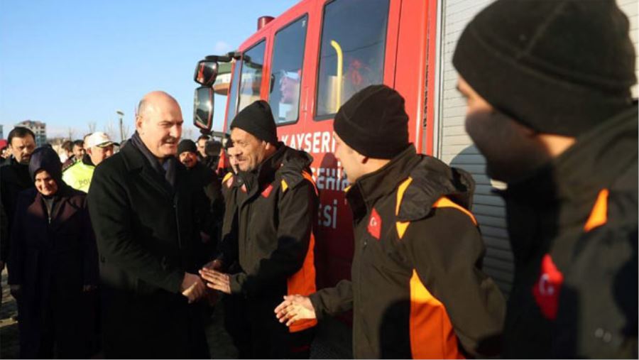 Kayseri Büyükşehir Belediyesi İtfaiye Daire Başkanlığı’nın Elazığ’a gönderdiği ekipleri İçişleri Bakanı Süleyman Soylu ziyaret etti. Bakan Soylu, itfaiye ekiplerinin çalışmalarıyla ilgili bilgi aldı ve Kayseri İtfaiyesine teşekkür etti.