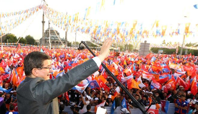 Başbakan ve Ak Parti Genel Başkanı Ahmet Davutoğlu partisinin il başkanlığınca tertiplenen seçim mitingine iştirak etmek üzere eşi Sare Davutoğlu´nun refakatinde hava yolu ile ilimize geldi? Vali Orhan Düzgün´ün önderlik ettiği ilimiz protokolünce Erkilet Hava Alanında karşılanan Başbakan Davutoğlu ve mahiyetindekiler oluşturulan konvoy eşliğinde Büyükşehir Belediyesi´ne, oradan da yaya olarak Cumhuriyet Meydanı´nda ki miting alanına ulaştı? Başbakan Davutoğlu konuşmasında ?Keşke diğer partiler de siyasi mücadelelerini meydanlarda sürdürselerdi. Bizler korku psikolojisini yenmek için meydanlardayız? ifadesini kullandı?