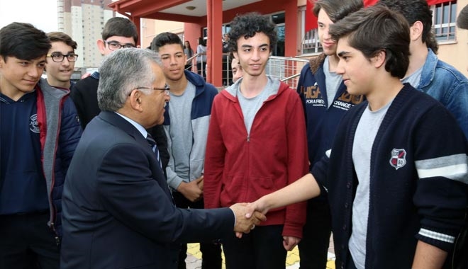 Kadir Has Anadolu Lisesi Müdürü Ahmet Tanrıverdi ve okul idaricileri birlikte okul binası, spor tesisi, laboratuarları ve konferans salonunu gezen Başkan Dr. Memduh Büyükkılıç ?Kadir Has Anadolu Lisesi öğrencilerin düzenlemiş olduğu kariyer günlerinin bu ay ki konuğu olmaktan son derece mutlu oldum. Melikgazi ilçesinde okuyan öğrenciler çok şanslı çünkü her bir okul adeta bilim yuvası, öğretmenler ilgili, veliler her türlü desteği sağlıyor, Milli eğitimin tüm olanakları sergiliyor ve belediye olarak da bu bütünlüğe hizmet ediyoruz. Bugün burada 185 öğrenciye hitap ediyorum. Okulunuz 19 derslikli olup 575 öğrenci ve 38 öğretmen mevcuttur. Ayrıca 2 fen laboratuarı ile spor ve konferans salonunuz, kütüphane ile internet bağlantınız vardır. Okulunuzda 15 öğrenciye bir öğretmen düşmektedir ki bu başarıyı getirir. Sonuçta sizlere de sadece çalışmak düşüyor. Çünkü sizlerden başta aileniz ve bu millet çok şeyler bekliyor. Türkiye´yi 2023 hedefine ulaştıracak olan siz gençlerimizsiniz? dedi.
