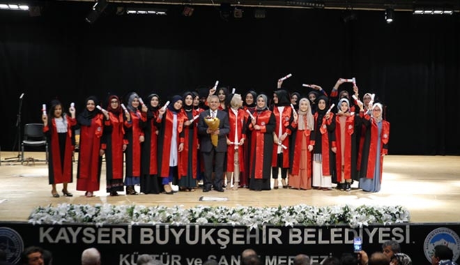 Büyükşehir Belediye Başkanı Memduh Büyükkılıç, 1951 yılında kurulan ve Türkiye´nin ilk İmam Hatip Liseleri´nden olan Kayseri Kız Anadolu İmam Hatip Lisesi´nin Kadir Has Kültür Merkezi´nde gerçekleştirdiği Mezuniyet Töreni´ne katıldı. 390 genç kızın mezuniyet sevincini aileleri ve öğretmenleriyle birlikte paylaşan Başkan Memduh Büyükkılıç, törende yaptığı konuşmada manevi kalkınmanın da önemine işaret etti. Maddi yönden kalkınmanın tek başına yeterli olmayacağını dile getiren Başkan Büyükkılıç, ?Manevi yönden kalkınmayı da unutmamak lazım. Tek kanatlı kuş uçmaz? değerlendirmesinde bulundu?