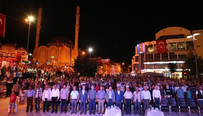 ?Kıymetli hemşehrilerim, hain FETÖ/PDY örgüt mensuplarının geçen sene 15 Temmuz gecesi kalkıştığı darbe teşebbüsünün ardından ülkemizde yeni bir ruh doğdu. Bu ruh, sağcısıyla-solcusuyla, alevisiyle- sünnisiyle, Kürdüyle-Türküyle bizi biz yapan Çanakkale Ruhu idi. Mazlum coğrafyaların umudu olan Başkomutanımız ve Cumhurbaşkanımız Recep Tayyip Erdoğan´ın dik duruşu ve tavizsiz cesaretinden ilham alan milletimiz, yurdumuzun dört bir tarafında hainlere karşı direnmiş, devletinin ve milletinin yanında durarak geleceğine sahip çıkmıştır.