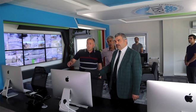Başkan Çelik, KASKİ Genel Müdürlüğü´nde toplantıların yanı sıra içme suyu şebekesinin SCADA sistemiyle takip edildiği birimde de incelemelerde bulundu.