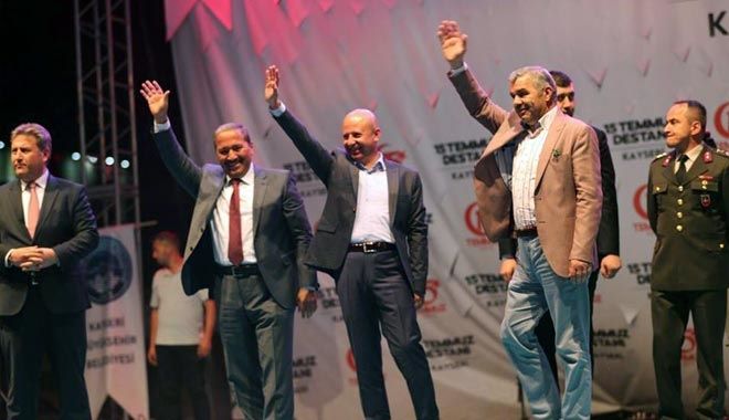 Ülkenin tüm şehirlerinde olduğu gibi Kayseri´de de yüzbinlerce vatandaş bir arada en içten, en samimi şekilde demokrasi nöbeti tuttu. Nöbete ailesiyle birlikte katılan Kocasinan Belediye Başkanı Ahmet Çolakbayrakdar, yüzbinlerce Kayserilinin büyük bir coşkuyla demokrasiye sahip çıkarak, yine destan yazdığını vurguladı. Milli irade nöbeti için belediyenin tüm imkanlarını seferber eden Başkan Çolakbayrakdar, ?Muhteşem bir kalabalık ile meydanları taçlandıran aziz milletimize teşekkür ediyor, şükranlarımı sunuyorum? dedi.