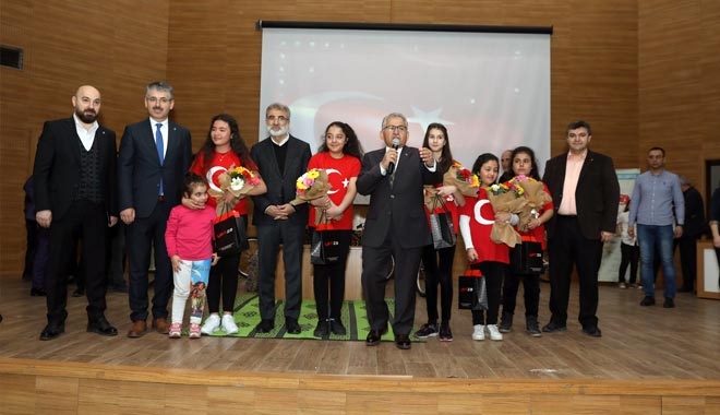 Saygı duruşunda bulunulması ve İstiklal Marşı´nın okunmasının ardından 5 öğrenci tarafından ezbere istiklal marşı okundu. Duygulu anların yaşandığı ve seyircilerin gözyaşlarını tutamadığı bu anlarda istiklal Marşını okuyan Döndü Esra Karabulut´u seyirciler coşku ile alkışladılar.