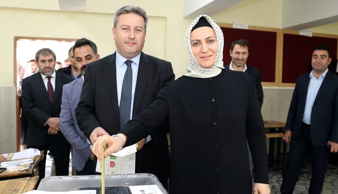 Talas Belediye Başkanı Mustafa Palancıoğlu oyunu eşi Emel Palancıoğlu ile birlikte Şükrü Başyazıcıoğlu Ortaokulu 1694 no´lu sandıkta kullandı.
