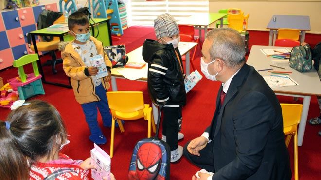 KAYMEK binası kreşlerinde eğitim gören öğrencileri ziyaret eden Akkışla Belediye Başkanı Ayhan Arslan çocuk maskesi dağıtımı yaptı. Akkışla Belediyesi Temizlik İşleri Müdürlüğü tarafından dezenfekte edilmiş hijyenik sınıflarda ders gören öğrencilerle birebir ilgilenen Başkan Arslan, maske dağıttıktan sonra miniklerin boyama oyununa katıldı.