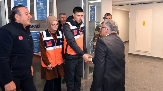Kayseri Büyükşehir Belediye Başkanı Dr. Memduh Büyükkılıç, Afet ve Acil Durum Yönetimi Başkanlığı (AFAD) gönüllülerine, depremin ilk anından itibaren canla başla gösterdiği arama-kurtarma çalışmalarına desteklerinden dolayı teşekkür etti.