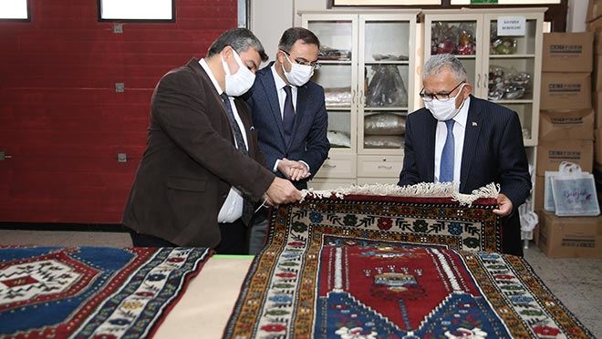 Kayseri Büyükşehir Belediye Başkanı Memduh Büyükkılıç, ‘150’ci Yılda 150 Proje’ kapsamında hayata geçirilen e3 isimli dijital platformda satılan ürünlerin bulunduğu KAYMEK İhtisas Merkezi’nde incelemelerde bulundu. Büyükkılıç, e-38’de ev tekstili, dekorasyon, hediyelik eşya, giyim, takı kategorilerinde iki binin üzerinde el sanatı eseri bulunduğunu söyledi.