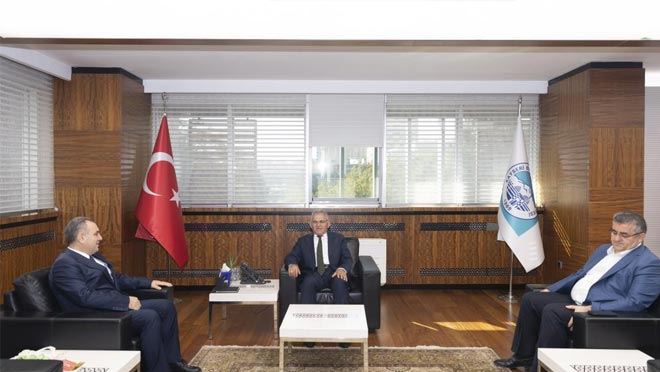 Kayseri Büyükşehir Belediye Başkanı Dr. Memduh Büyükkılıç, Cumhurbaşkanlığı Kararnamesi ile Kayseri Üniversitesi (KAYÜ) Rektörü olarak yeniden atanan Prof. Dr. Kurtuluş Karamustafa ve Erciyes Üniversitesi’nin (ERÜ) yeni Rektörü Prof. Dr. Fatih Altun ile bir araya geldi.
