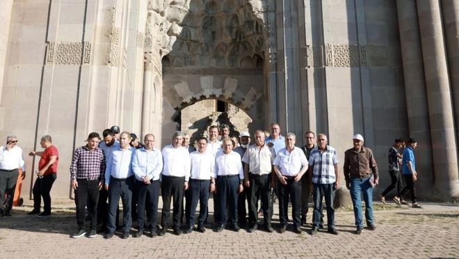 Başkan Büyükkılıç ile Vali Çiçek, Anadolu Selçuklu dönemi mimarisinin en abidevi örneklerinden biri olan ve Sultan I. Alaeddin Keykubad tarafından ipek yolu üzerinde 1232-1236 yıllarında inşa ettirilen Sultan Hanı’nı gezdiler.