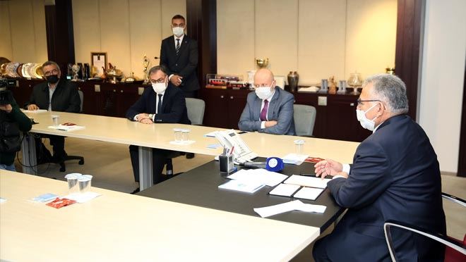 Kayseri Büyükşehir Belediye Başkanı Dr. Memduh Büyükkılıç, Pandemi ile ilgili kararlar ve kısıtlamalarda herhangi bir mağduriyet oluşmaması adına Melikgazi, Kocasinan, Talas, Hacılar belediye başkanları ile Sanayi, Ticaret, Borsa ve KESOB Başkanları ile temsilcilerinin katıldığı istişare toplantısı yaptı. Başkan Büyükkılıç, “Şehrimizin esenliğini, huzurunu ve üretime olan katkısını sürdürme adına hepimizin gayret etmesi gerekiyor” dedi.