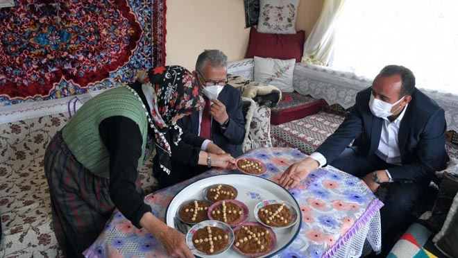 Sıcak ve samimi ortamda gerçekleşen ziyarette Necibe Nine, Başkan Büyükkılıç’a dolaz tatlısı ikram etti. Necibe Nine, “Dolandın da geldin başkanım Kayseri’nin dağından, üzüm mü kesiyon dere bağından, dolaz yaptım sana tereyağından, afiyet olsun başkanım” diye şiir de okudu.