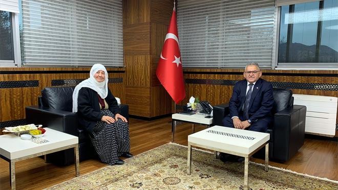 Büyükşehir Belediye Başkanı Dr. Memduh Büyükkılıç, 75 yıllık ömründe hiç yakından görmediği Erciyes Dağı’nı görme hayalini gerçekleştirdiği ve akabinde davetine icabet ederek İncesu’daki evinde ziyaret ettiği Necibe Nine’yi bu kez makamında misafir etti.