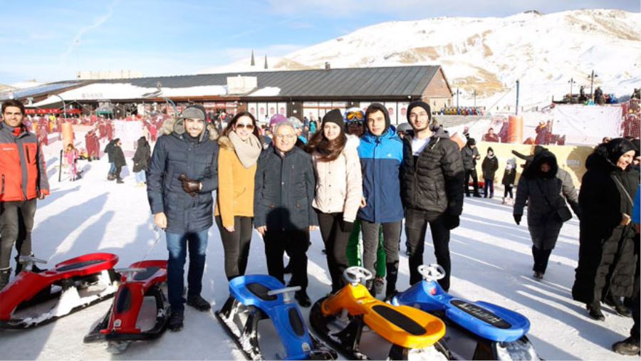Kayseri Büyükşehir Belediye Başkanı Dr. Memduh Büyükkılıç, Erciyes’e çıkarak yerli ve yabancı misafirlerle görüştü. Çocuklarla yakından ilgilenen, ziyaretçilerin Erciyes’le ilgili görüşlerini alan Başkan Büyükkılıç, Erciyes’in hizmet kalitesi ve modern tesisleri ile herkesin takdirini kazanan bir kış turizm merkezi olduğunu söyledi. Erciyes’in yurt içi ve yurt dışından büyük ilgi gördüğünü ifade eden Başkan Memduh Büyükkılıç, “Erciyes bizim gurur kaynağımız, yüz akımız. Uluslararası standartlardaki gerek mekanik tesislerimiz, gerekse kayak pistlerimiz ile herkes için bir cazibe merkezi. Kış boyunca Polonya, Ukrayna, Rusya ve Belarus’tan yapılacak olan charter seferlerimiz başladı; ama bunun yanında Meksika ve Brezilya’dan dahi Erciyes’e gelenler söz konusu. Amacımız yabancı ziyaretçi sayımızı daha da artırmak. Bereketli ve yoğun kalabalık var. Daha fazla kar yağmasını bekliyoruz; ancak pislerimiz açık. Erciyes’i gerek yönetim anlayışı, gerek fiyatı, gerekse hizmet kalitesiyle herkes takdir ediyor” diye konuştu. Başkan Memduh Büyükkılıç, özellikle kayak tutkunlarını da Erciyes’e davet etti.