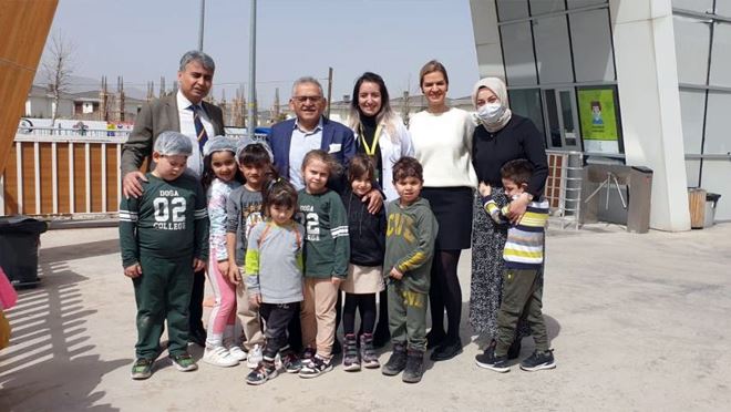 ‘Öğrenci Dostu’ belediyecilik faaliyetlerinin en güzel örneklerini kayseri’de sergileyen Başkan Büyükkılıç, her fırsatta gerçekleştirdiği okul ziyaretlerini aralıksız sürdürürken, öğrenci ve öğretmenlerle sohbet ederek talep ve önerilerini bizzat dinliyor. Büyükkılıç, gerçekleştirdiği okul ziyaretlerine Doğa Koleji ile devam etti. Okul ziyaretinde minik öğrencilerin ilgi ve sevgisiyle karşılaşan Büyükkılıç, minikleri çok sevdiklerini ve onların en kaliteli eğitimle, ülkeye faydalı bireyler olarak yetişmelerini çok önemsediklerini belirtti. Büyükşehir Belediye Başkanı Dr. Memduh Büyükkılıç, burada, öğrencilerle eğlenceli ve samimi sohbetinin ardından, öğretmenlerle de görüşerek talep ve önerilerini bizzat dinledi. Başkan Büyükkılıç, öğretmenlere kutsal bir mesleği icra ettikleri ve donanımlı, ülkesine ve milletine faydalı nesiller yetiştirdikleri için teşekkür ederken, öğretmenlerde eğitime olan desteklerinden ve dolayı Büyükkılıç’a teşekkür etti. Başkan Büyükkılıç, ziyaret sonunda minik öğrenciler ve öğretmenlerle hatıra fotoğrafı çektirdi.