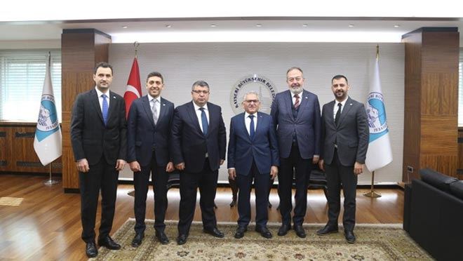 Kayseri Büyükşehir Belediye Başkanı Dr. Memduh Büyükkılıç, Kayseri Organize Sanayi Bölgesi Yönetim Kurulu Başkanı Yunus İmamoğlu ve yönetim kurulu üyelerini makamında kabul etti.