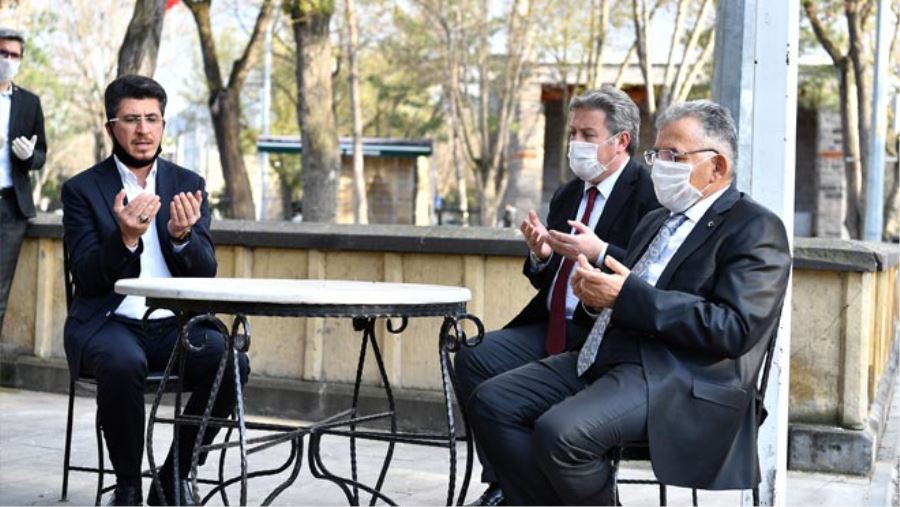 Hunat Camisi müezzini Fatih Demir’in okuduğu Kuran-ı Kerim tilavetinin ardından Büyükşehir Belediye Başkanı Memduh Büyükkılıç ve Melikgazi Belediye Başkanı Mustafa Palancıoğlu şehrimiz, ülkemiz ve tüm İslam Alemi için dua etti.