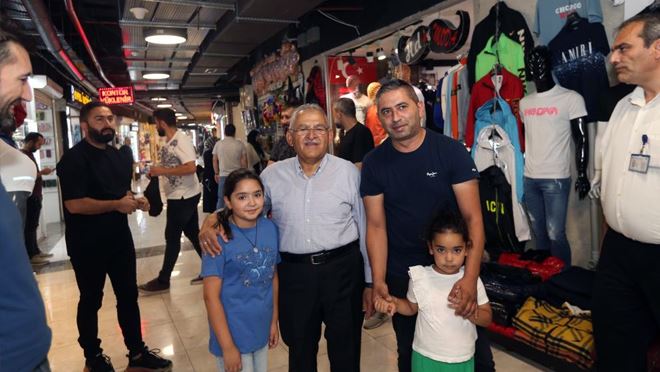 Başkan Büyükkılıç’ın çarşı gezisi sırasında Etüt ve Projeler Dairesi Başkanı Ahmet Şeref Bahçecioğlu ile Yeraltı Çarşısı Dernek Başkanı Gökhan Gülen de hazır bulundu.