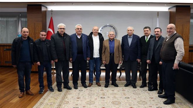 Kayseri Büyükşehir Belediye Başkanı Dr. Memduh Büyükkılıç, Esnaf ve Sanatkârlar Odaları Birliği Başkanı Şeyhi Odakır, Lokantacılar ve Pastacılar Odası Başkanı Altan Aydemir ve Şoförler ve Otomobilciler Odası Başkanı Ali Ateş ile beraberindeki heyeti makamında kabul etti.