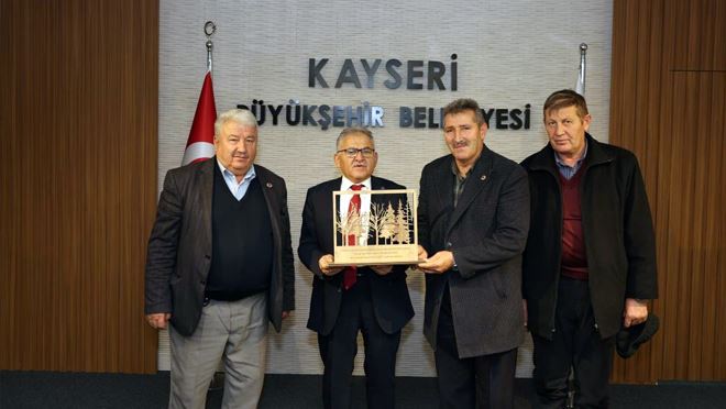 Ziyarette, muhtar Ulusoy tarafından, Başkan Büyükkılıç’a, ‘Kayseri Büyükşehir Belediye Başkanı Sayın Dr. Memduh Büyükkılıç adına Bayraktepe Mesire Alanı’na 500 adet çam fidesi, Sarı Mahalle Muhtarı Bekir Ulusoy tarafından dikilmiştir’ yazılı bir plaket takdim edildi.