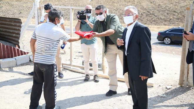 Büyükşehir Belediye Başkanı Dr. Memduh Büyükkılıç, Felahiye programını tamamlayıp Kayseri’ye dönerken Mehmet Sağır isimli vatandaşın evinde yıpranmış, eski Türk bayrağını gördü. Hemen aracını durdurup evi ziyaret eden Başkan Büyükkılıç, ay yıldızlı Türk Bayrağı’nı yenisiyle değiştirdi.