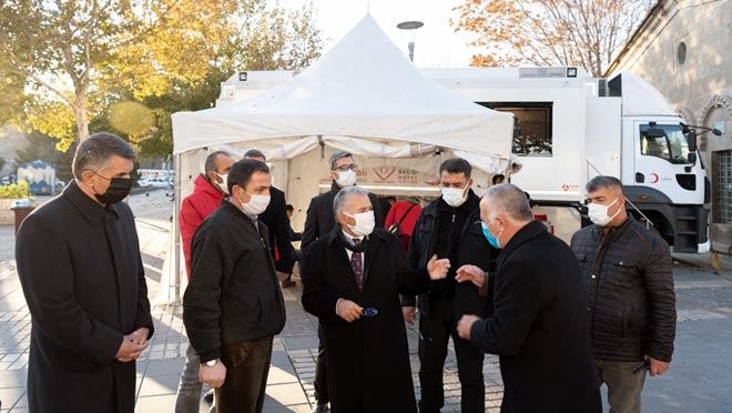 Kayseri Büyükşehir Belediye Başkanı Dr. Memduh Büyükkılıç, çarşı denetimleri sırasında Kızılay Kan Bağışı Çadırı’nı da ziyaret ederek, hem kan bağışının önemine dikkat çekti hem de Kovid-19 hastalığını başarıyla atlatan vatandaşlardan donör olmalarını isteyerek, “İmmün Plazma Bağışı” yapmaları çağrısında bulundu.