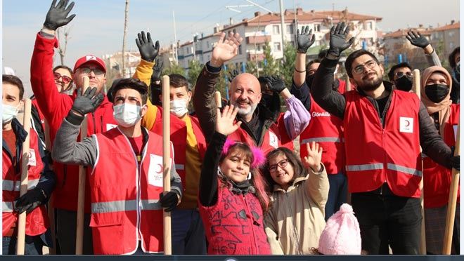 Kocasinan Belediye Başkanı Ahmet Çolakbayrakdar, Türk Kızılay gönüllüleri ile birlikte Yakut Mahallesi’nde 200 çam ve meyve ağacını toprakla buluşturdu.