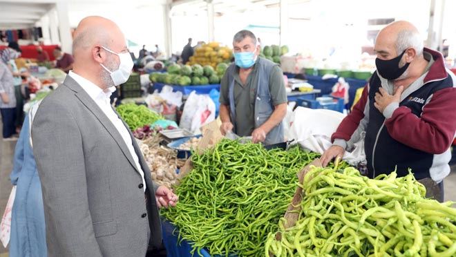Erciyesevler Mahallesi’ndeki modern pazar yerini ziyaret eden Başkan Çolakbayrakdar, hem tezgah açan esnafla hem de alışveriş yapan bölge sakinleriyle yakından ilgilendi. Esnafa hayırlı işler ve bol kazançlar dileyen Başkan Çolakbayrakdar, vatandaşların ve esnafların kurallara uyup uymadığını büyük bir titizlikle kontrol etti. Maske, mesafe ve hijyen kuralları hususunda uyarılarda bulunan Başkan Çolakbayrakdar, vatandaşların tedbirlere sıkı bir şekilde uymasının koronavirüs ile mücadelede başarıya ulaşmayı hızlandıracağını söyledi.