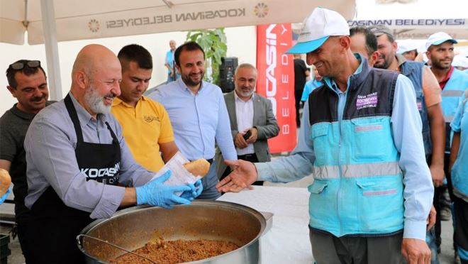 Kayseri Kocasinan Belediye Başkanı Ahmet Çolakbayrakdar, personel ile düzenlenen bayramlaşma töreninde önlük takarak, çalışanlara ekmek arası kavurma ikram etti. Başkan Çolakbayrakdar, “Yaratılmışların en şereflisi olan insan için çalışıyoruz” dedi.