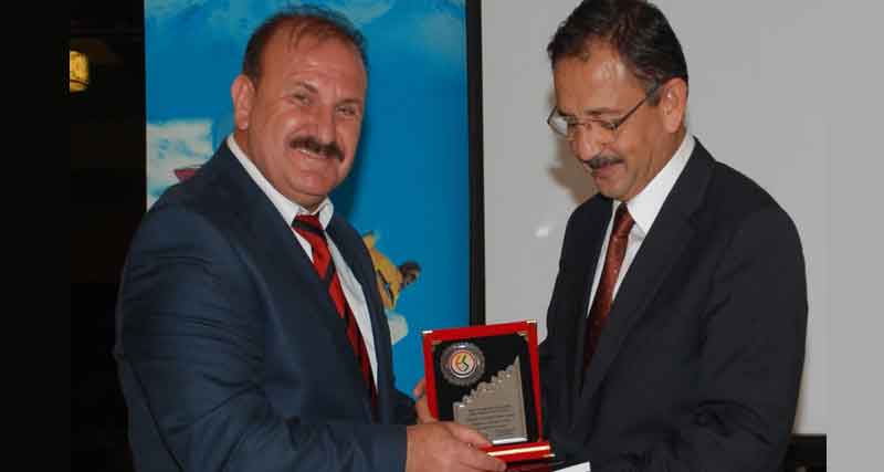 Başkan Özhaseki'nin konuşmalarının ardından ESDER Kayseri Başkanı Alaattin Hoşgören Başkan Özhaseki'ye ESDER Derneğinin yayınlamış olduğu ‘Vatan Sağolsun’ kitabı ile plaket takdim etti.