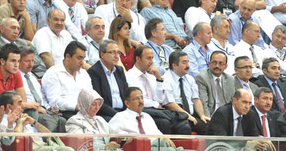 Kadir Has Kongre ve Spor Merkezi'ni tıklım tıklım dolduran vatandaşların coşkularına ortak olan Başkan Özhaseki, alınan molalar sırasında seyircilerin tezahüratlarına eşi Neşe Özhaseki ile birlikte katıldı.