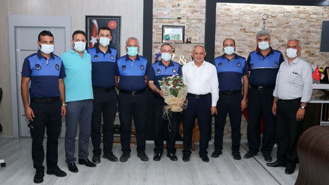 Yahyalı Belediyesi Zabıta Müdürlüğü, Zabıta Haftası ve Zabıta Teşkilatı'nın 195. kuruluş yıldönümünü münasebetiyle Belediye Başkanı Esat Öztürk’ü makamında ziyaret etti.