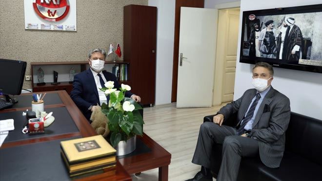 Melikgazi Belediye Başkanı Mustafa Palancıoğlu, KayGrup’u ziyaret etti. Genel Yayın Yönetmeni Sami Dayangaç ile görüşen Palancıoğlu, yeni görevinde Dayangaç’a başarılar diledi.