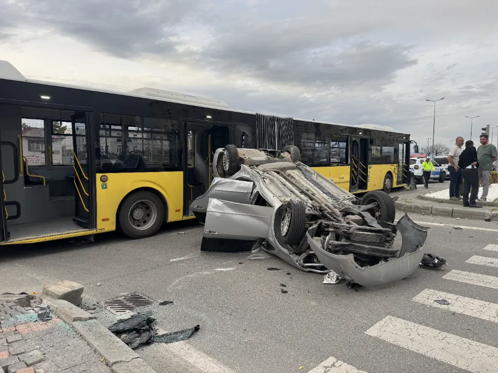 Kazada otomobil sürücüsü B.D. ve otobüsteki 8 yolcu yaralandı.