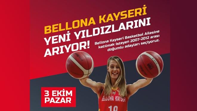 Kadınlar Basketbol Süper Lig ekiplerinden Bellona Kayseri Basketbol, alt yapı seçmesi ile yeni yıldızlarını arayacak. Alt yapı seçmeleri, 3 Pazar günü yapılacak.
