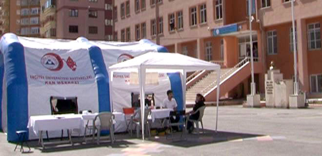 Besime Özderici Ortaokulu idareci ve öğretmenlerinden oluşan 110 kişilik gönüllü eğitimci hayat kurtarmak için kan bağışında bulundu...Erciyes Üniversitesi Kan Merkezi ekiplerinin okulda oluşturduğu merkezde kan bağışında bulunan eğitim ordusunun nyılmaz neferleri bu etkinlik ile kan bağışının önemine dikkat çekerek toplumu kan bağışına teşvik etmek istediklerini vurguladılar...