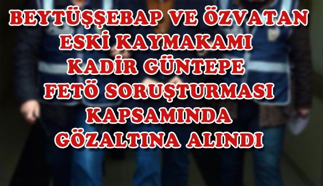 FETÖ soruşturması kapsamında Beytüşşebap ve Özvatan eski Kaymakamı Kadir Güntepe ve bir süre önce açığa alınan Özvatan Kaymakamı Uğur Yıldırım Tokat Cumhuriyet Başsavcılığı´nın FETÖ/PDY´nin ´Mülkiye Yapılanması´na yönelik başlattığı soruşturma kapsamında göz altına alınarak Tokat´a gönderildi?