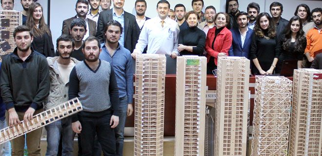 Mühendislik Fakültesi Konferans Salonu’nda düzenlenen uygulamada İnşaat Mühendisliği Bölümünün Özel Konular dersi kapsamında belirlenen kurallara göre tasarlanıp, balsa ağacı çıtalarından ve levhalarından imal edilen ölçekli bina maketleri, sarsma masası testlerine tabi tutularak deprem performansları ölçüldü. Maketlerin hissedilen sarsıntı ve yapısal hasar seviyesi kontrol edildi. Buna göre, Özel Konular dersi kapsamında test edilen bina maketlerinin tamamı verilen depremleri hasarsız atlattı.