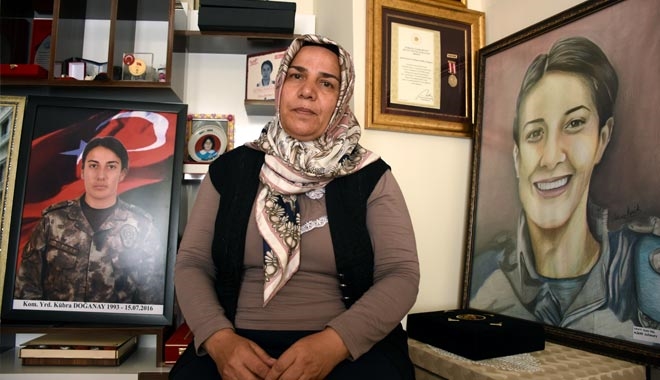 Fetullahçı Terör Örgütü´nün (FETÖ) 15 Temmuz´daki darbe girişimi sırasında Ankara Gölbaşı Özel Harekat Daire Başkanlığına düzenlenen saldırıda şehit olan özel harekat komiser yardımcısı Kübra Doğanay´ın annesi Hikmet Doğanay, şehit kızının kahramanlığı ile gurur duyuyor.