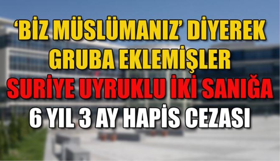 Kayseri’de polis ekiplerinin yaptığı operasyonda yakalanan ve DEAŞ terör örgütü içerisinde haberleşme programını kullandıkları iddiasıyla tutuklu yargılanan iki Suriye uyruklu sanığa ‘silahlı terör örgütüne üye olma’ suçundan ayrı ayrı 6 yıl 3 ay hapis cezası verildi. Sanıklar mahkemede, whatsapp grubunda kafa kesme görüntüleri olduğunu, o görüntüleri görür görmez gruptan çıktıklarını söylemişlerdi.