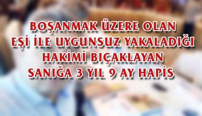 Kayseri´de boşanmak üzere olan yabancı uyruklu bir kadın ile uygunsuz yakaladığı iddiasıyla Aile Mahkemesi hakimini bıçaklayan sanığa ?kasten yaralama´ suçundan 3 yıl 9 ay hapis cezası verildi.
