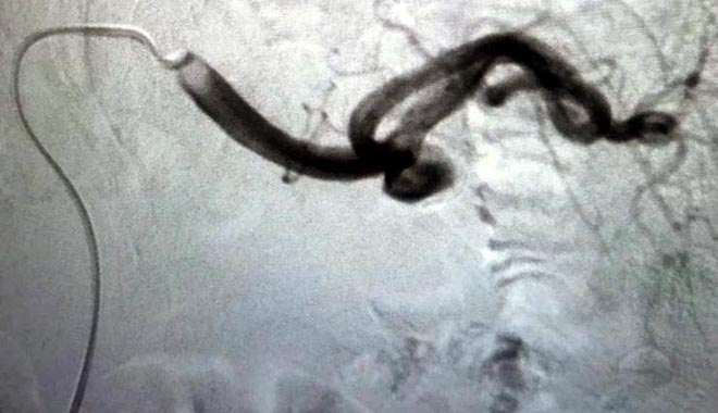 Kayseri Şehir Hastanesi Girişimsel Radyoloji Uzmanı Doktor Mustafa Özdemir´in yaptığı tedavide, hastanın kasığından girilerek genişlemiş damar bölgesi içine ulaşıldı ve anevrizma kapatıldıç 1.5 saat süren işlem sonrasında hasta, 1 gün gözlem altında tutulduktan sonra taburcu edildi ve normal hayatına döndü.