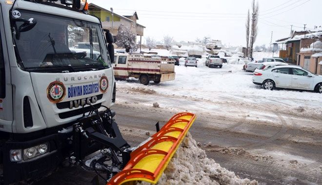 Bünyan Belediyesi karla mücadele alanında yürütülen çalışmalara aralıksız devam ediyor. İlçede etkili olan kar yağışı sonrası ana arterleri açan Bünyan Belediyesi ilçe merkezinde çalışmaları sürdürüyor.