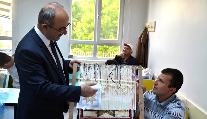 Bünyan Belediye Başkanı Şinasi Gülcüoğlu; ´Mesleki Eğitim Yoluyla Engelsiz Hayata´ projesi kapsamında Engelli ve dezavantajlı kadın kursiyerlerin halı dokuma atölyelerini ziyaret etti.