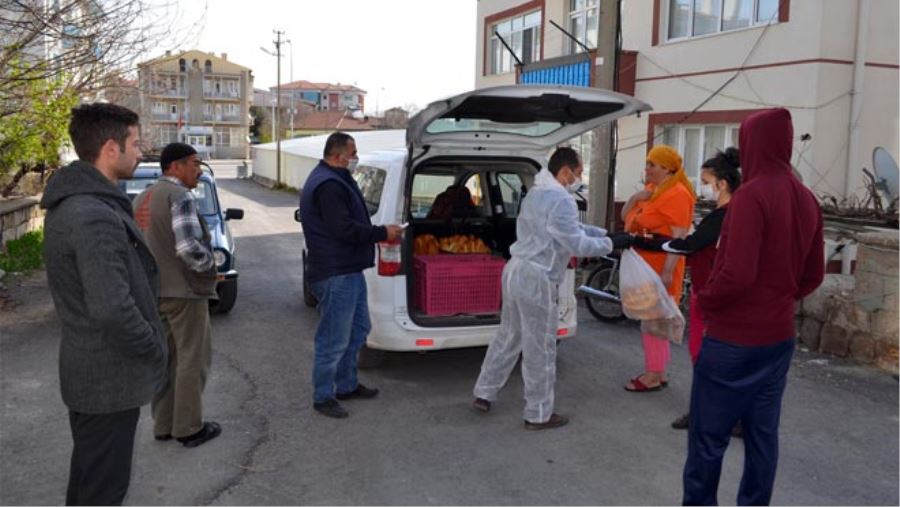 İçişleri Bakanlığınca 30 büyükşehir ile Zonguldak'ta, il sınırları içinde iki gün sokağa çıkma kısıtlaması getirilmesinin ardından Bünyan Belediyesi ekipleri, vatandaşların sıkıntı yaşamaması için sokak sokak ekmek dağıtıyor.