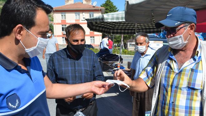 Zabıta Müdürlüğü ve Temizlik İşleri Müdürlüğü’ne bağlı ekipleri, toplum sağlığı için çalışılmalarını aksatmadan sürdürüyor. Zabıta Müdürlüğü ekipleri, mahallelerde kurulan pazarların girişinde vatandaşları maske kullanımı noktasında uyardı. Alışveriş yapan vatandaşlara ürün seçme yasağı ve üç metre kuralı hatırlatıldı. Maskesiz vatandaşlara da maske dağıtıldı.