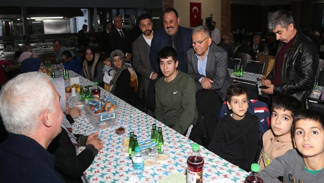 Başkan Büyükkılıç, iftar programında yaptığı konuşmada, “Sizler gibi birbirinden kıymetli muhterem hocalarımızla, hafızlık okuyan yavrularımızla, depremzede canlarımızla bir arada olmak bizleri memnun etmiştir” ifadesini kullanıp Kayseri’nin hayırseverliğine vurgu yaparak şunları kaydetti “Cenab-ı Allah asrın felaketi olarak nitelendiren böyle bir felaketi bir daha göstermesin diye temennide bulunuyorum. Bu felaket vesilesiyle üzerimize düşeni yapma yönünde Kayseri’mizin hayırsever, hamiyetperver güzel insanlarının adeta seferber olup, belediye başkanları olarak bizlerin de onların öncüsü, rehberi olma yolunda sadece Kahramanmaraş’a değil, bütün deprem bölgelerine imkânları seferber ettik”