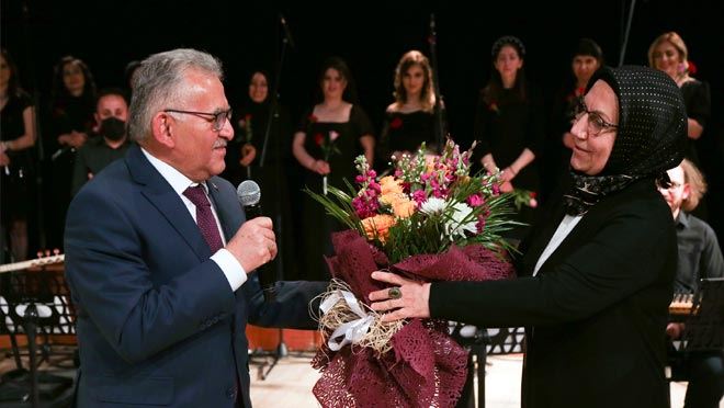 Program sonunda Başkan Büyükkılıç ile eşi Necmiye Büyükkılıç, Namık Kemal Bilgin’e çiçek takdim edip, kadın korosu üyelere de karanfil dağıttılar. Başkan Büyükkılıç da kendisine takdim edilen çiçeği tüm kadınlar adına eşi Necmiye Büyükkılıç’a verdi.