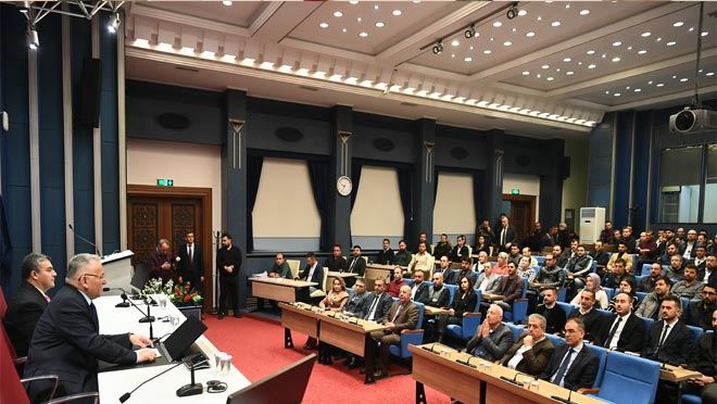 Büyükşehir Belediye Başkanı Dr. Memduh Büyükkılıç, TBMM’de çıkarılan ‘Devlet Memurları Kanunu ve Bazı Kanunlar ile 663 sayılı Kanun Hükmünde Kararnamede Değişiklik Yapılmasına Dair Kanun’ ile Büyükşehir Belediyesi’nde çalışan ve kadro verilen sözleşmeli personel ile bir araya geldi. Büyükşehir Meclis Salonu’nda gerçekleşen görüşmeye Başkan Büyükkılıç’ın yanı sıra, Genel Sekreter Yardımcıları Hamdi Elcuman, Serdar Öztürk, Bayar Özsoy ve Ali Hasdal, daire başkanları, müdürler ve personel katıldı. Kadroya geçen personele hayırlı olsun dileklerini ileten Başkan Büyükkılıç, personele hitaben yaptığı konuşmada, aidiyet duygusunu vurgulayarak şunları kaydetti “Şartlar ve konum ne olursa olsun inanıyorum ki sizler bulunduğunuz yerde hakkını vererek, bizlere güvenen insanlara hizmet etme yolunda layık olmak için gayret eden kardeşlerimizsiniz. Çalışacağız, gayret edeceğiz, aidiyet duygusu diye nitelendirdiğimiz, bulunduğumuz birimi, kurumu, şehrimizi, ülkemizi, olmazsa olmaz olan bayrağımızı, devletimizi, vatanımızı, milletimizi, ailemizi sahipleneceğiz. Bu duygu ile hareket edeceğiz”